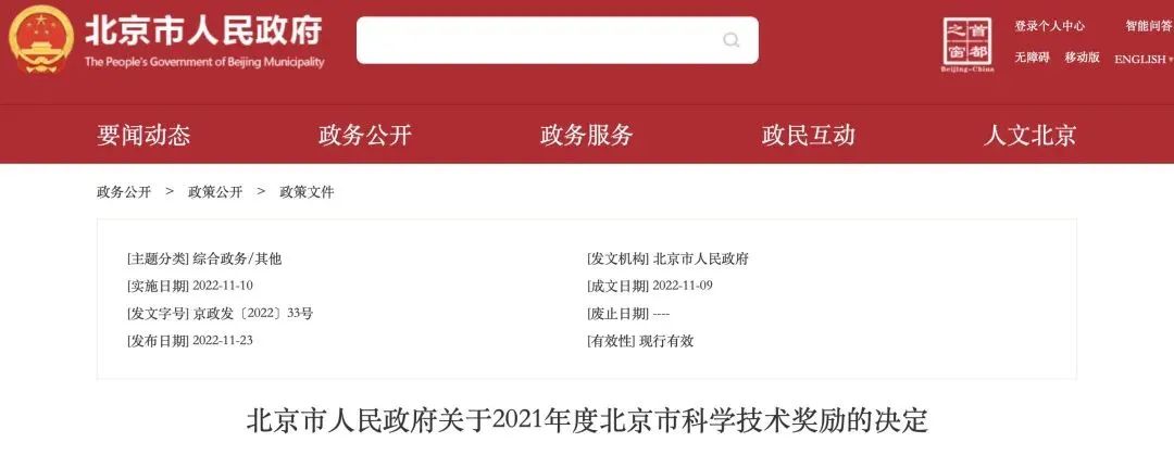 《北京市人民政府关于2021年度北京市科学技术奖励的决定》公布,共16位科学家、191项成果获得大奖。