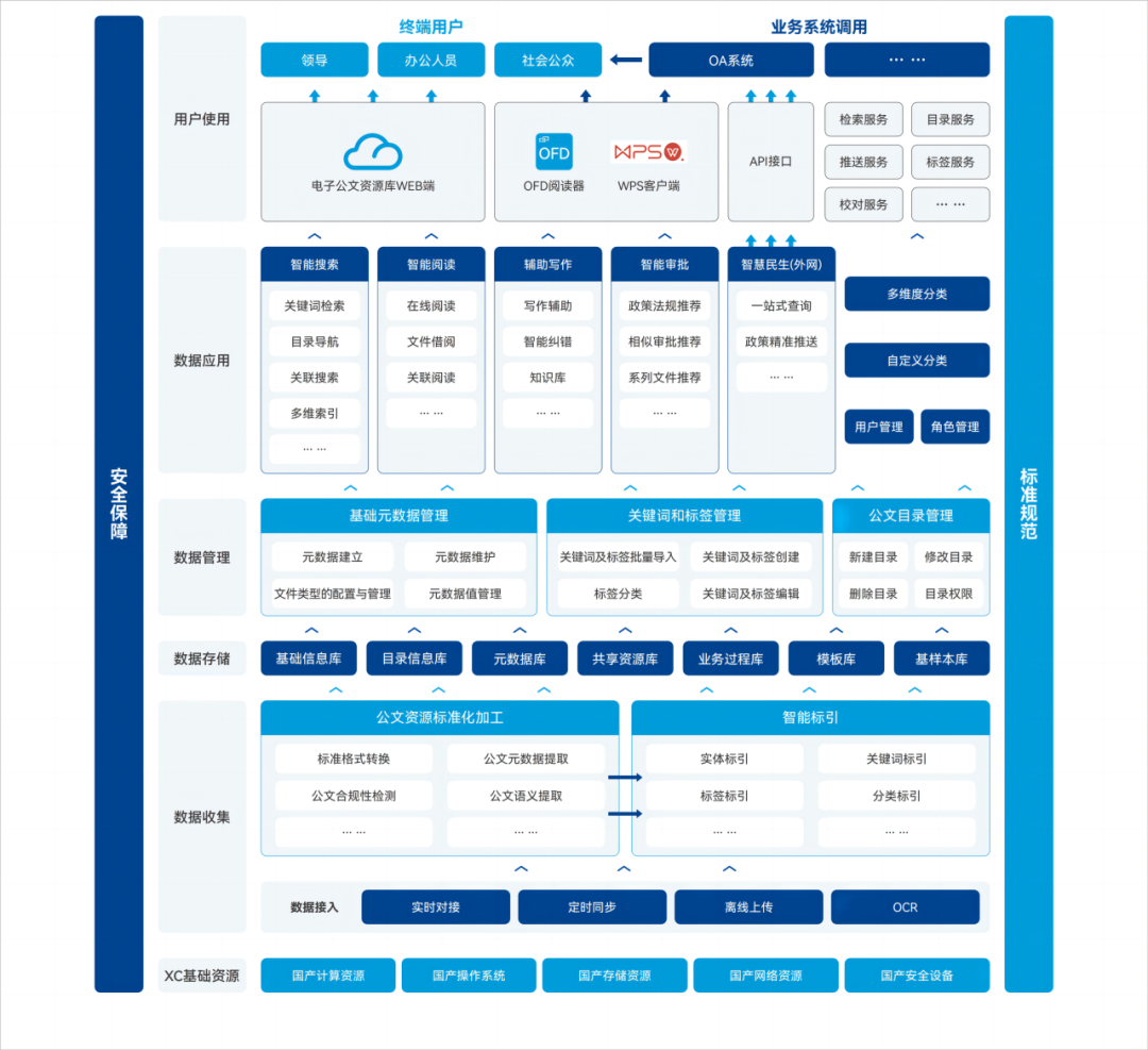 王总介绍,数科和母公司金山办公联合研发的电子公文资源库系统围绕电子公文的“收→存→管→用”四个阶段,对电子公文进行汇聚、加工、检测、标引、存储、管理,实现电子公文由数据到数字资产的转变,对内通过智能搜索、辅助审批、辅助公文撰写等方式赋能政务办公,对外通过一站式政策从查询、政策精准推送等方式赋能民生应用,全面提高数字化转型效率和效能。